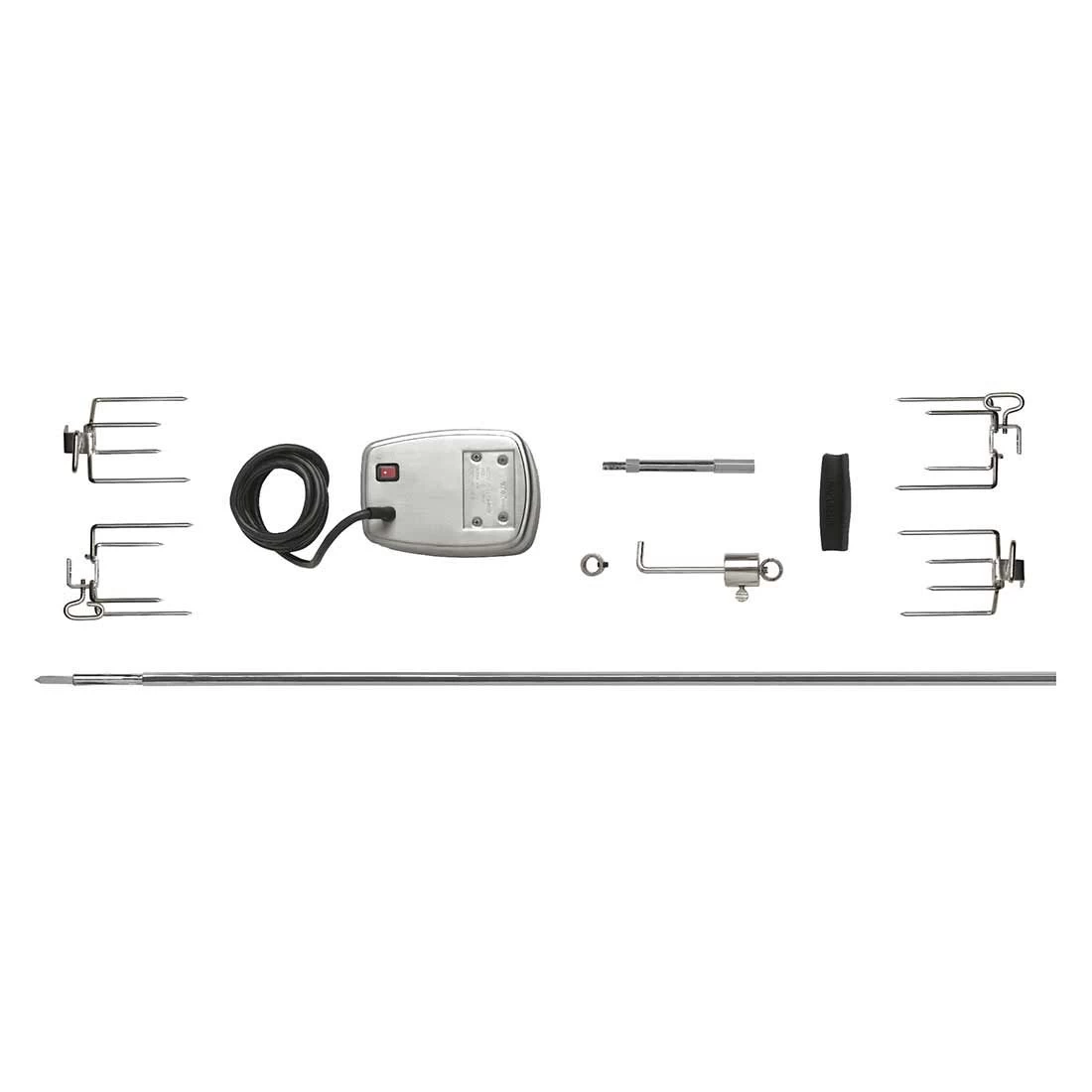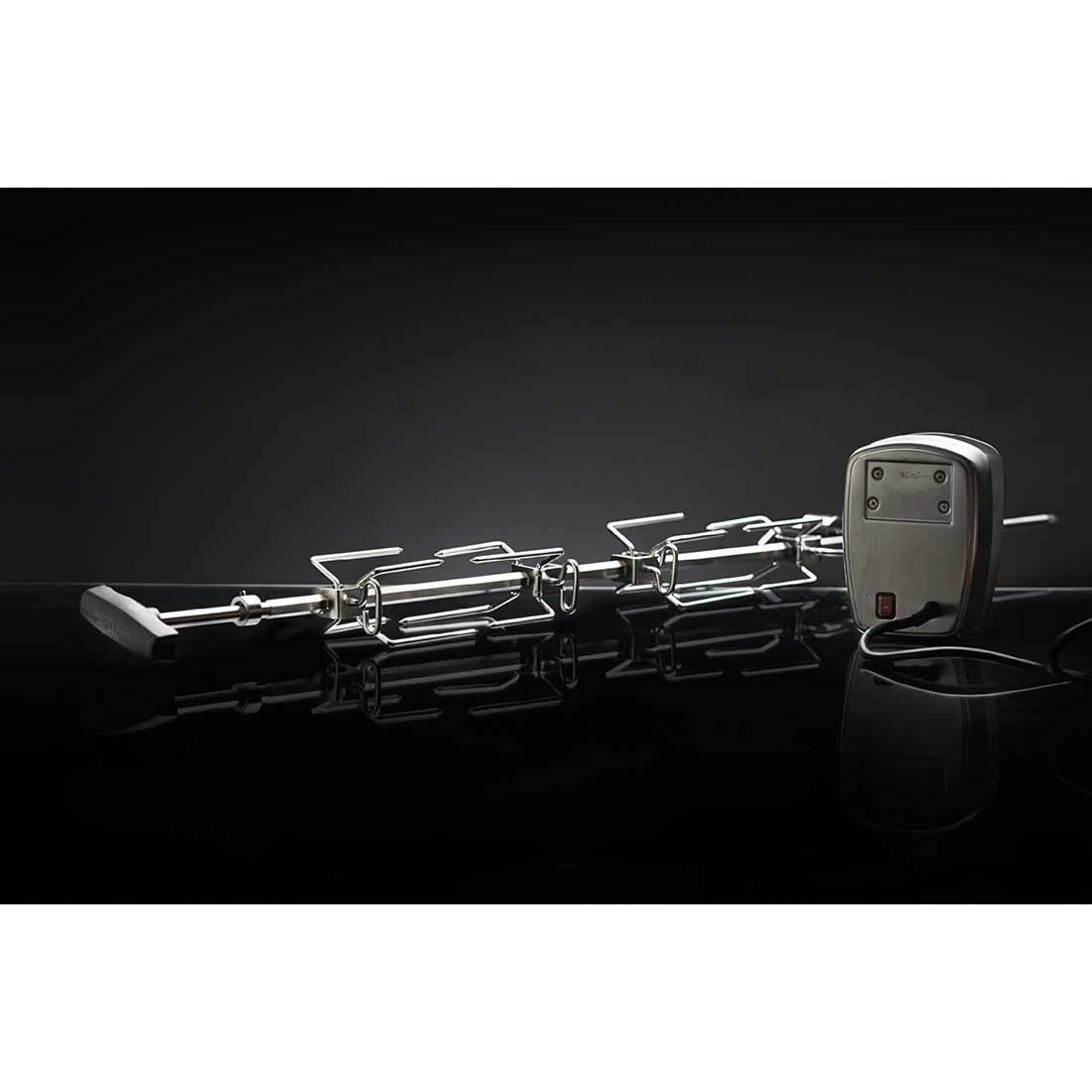 Napoleon® Drehspieß-Set in Commercial Quality Ausführung: Mit vier Edelstahl-Fleischklammern, Edelstahl-Drehspieß (sechskantig) und Motor mit Edelstahlgehäuse. Passend für das Grillmodel Prestige PRO™ 825.