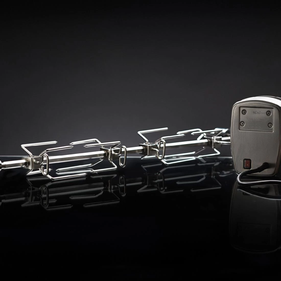 Napoleon® Drehspieß-Set in Commercial Quality Ausführung: Mit vier Edelstahl-Fleischklammern, Edelstahl-Drehspieß (sechskantig) und Motor mit Edelstahlgehäuse. Passend für das Grillmodel Prestige PRO™ 665.