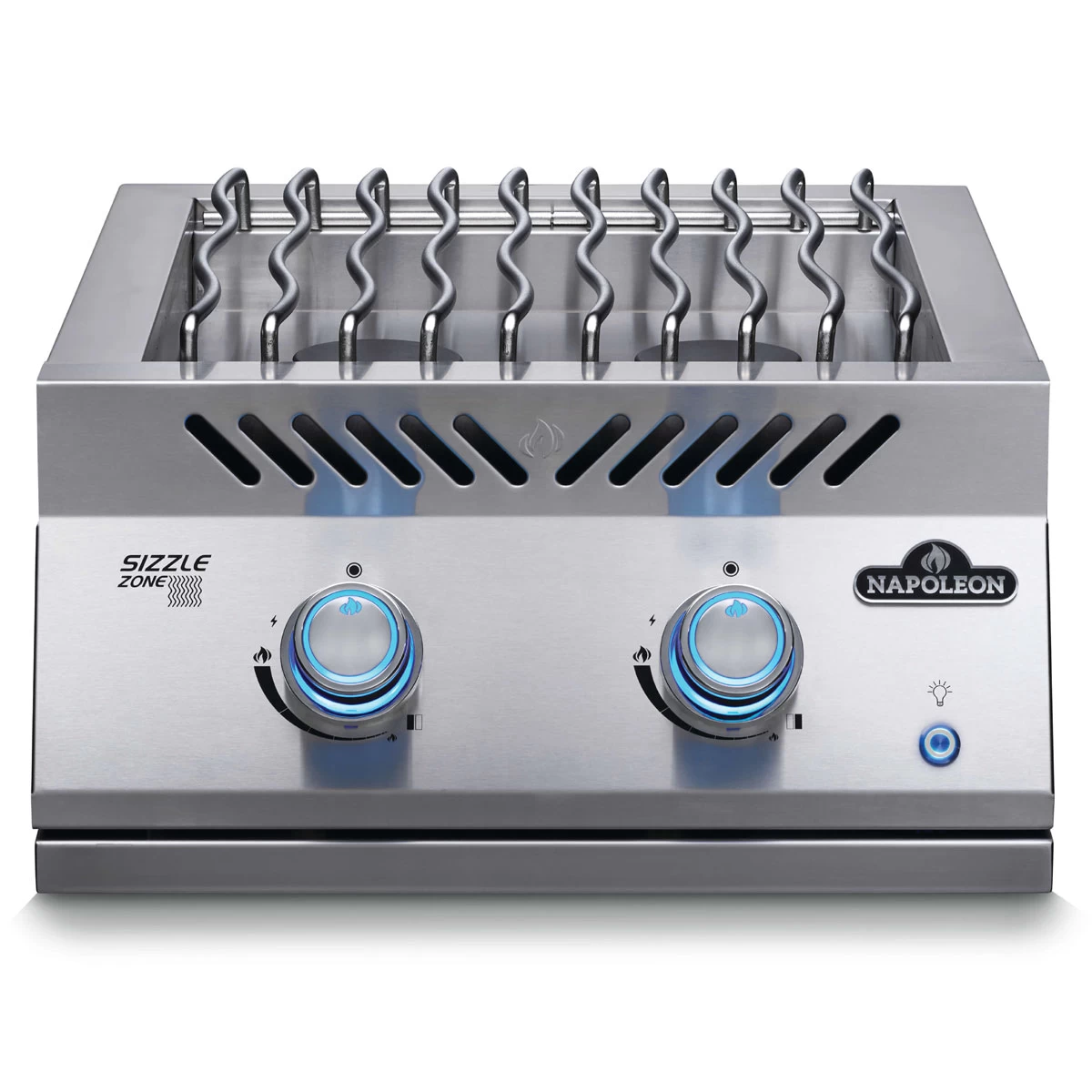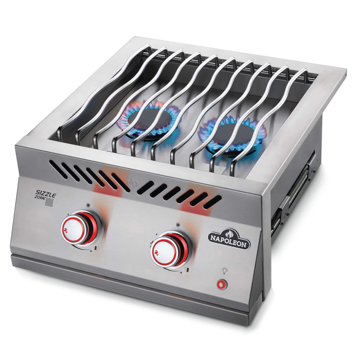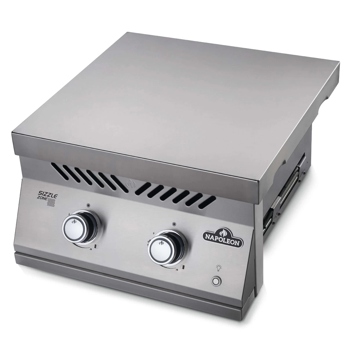 - Wird der Einbau-Seitenbrenner nicht in der Nähe eines Napoleon 700er Einbaugrills verbaut, ist für die Drehregler-Stromversorgung zusätzlich ein Netzteil-Kit erforderlich