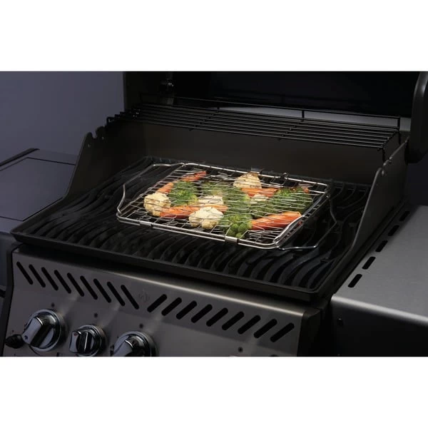Ob Fisch, Gemüse oder gegrillte Sandwiches, der Flexi-Grillkorb 57012 von Napoleon hält alles fest, was nicht zerfallen darf. Die dehnbaren Federn der beiden Seiten klemmen Grillgut sanft ein. Insbesondere Fische im Ganzen, Lachsfilets und kleinteiliges Gemüse finden so den idealen Grillplatz. Auch für gegrillte Sandwiches ist der Flexi-Grillkorb aus Edelstahl bestens geeignet. Mit nur einer Bewegung lässt sich der gesamte Korb wenden, und es fällt kein Grillgut heraus. Dank seiner beidseitigen Bügel sitzt der Grillkorb nicht direkt am Grillrost auf. So bleibt nichts am Rost haften und das Grillgut wird sanft gegrillt. Der Flexi Grillkorb ist aus Edelstahl gefertigt und für die Spülmaschine geeignet.Art.-Nr.: 1404558