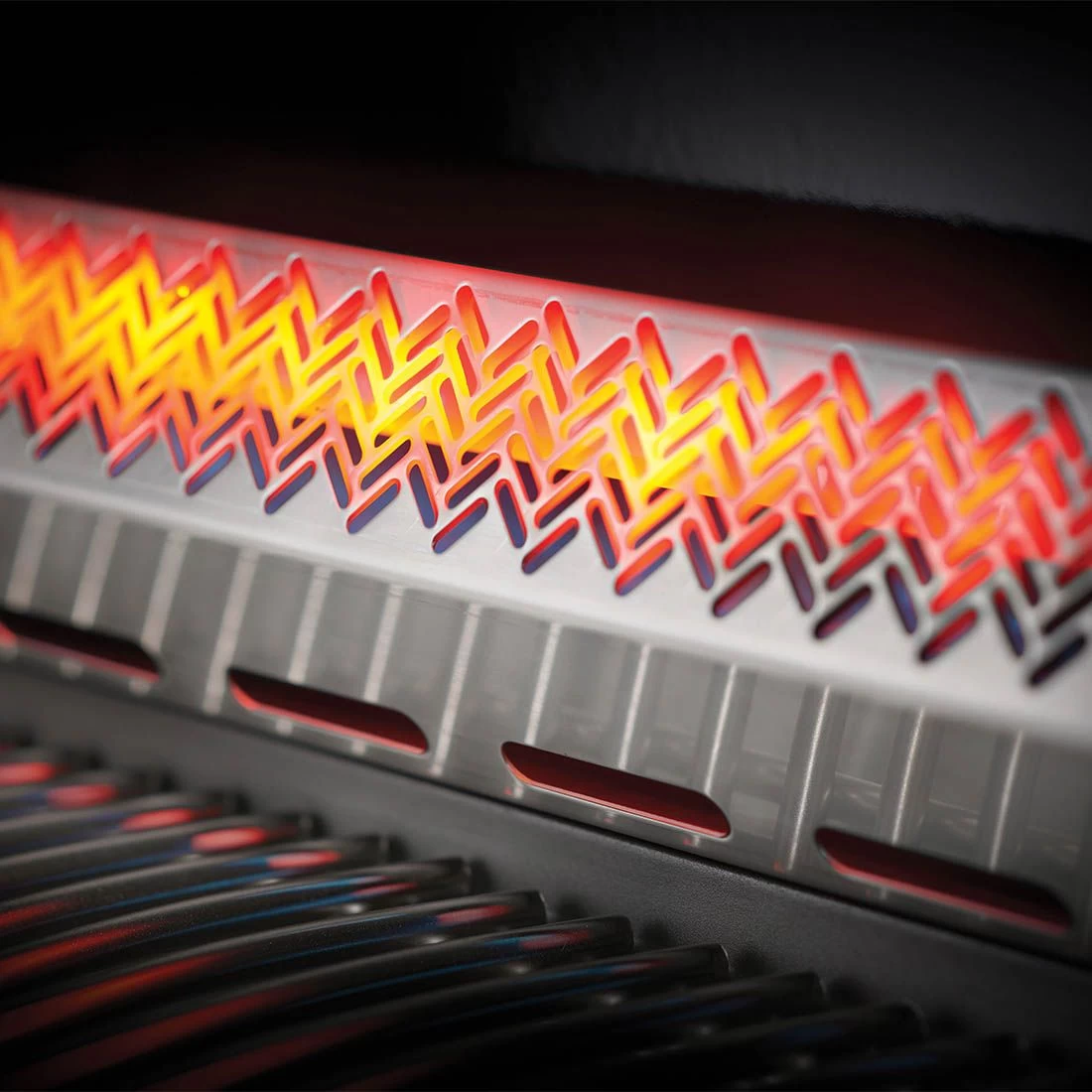 Die ergonomischen SAFETY GLOW™ Drehregler besitzen eine angenehme Haptik und sorgen für eine präzise Temperatursteuerung, diese verfügen zudem eine blaue Hintergrundbeleuchtung, welche bei strömendem Gas seine Farbe auf Rot ändert. Das Napoleon®-typische Wellen-Design der WAVE™ Grillroste sorgt für eine gleichmäßigere Hitzeverteilung und hält auch kleineres Grillgut sicher am Rost.