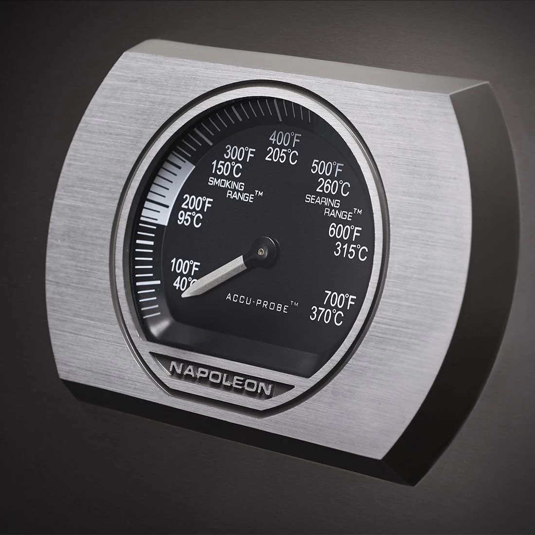 Die ergonomischen Drehregler besitzen eine angenehme Haptik und sorgen für eine präzise Temperatursteuerung. Die Napoleon® WAVE™ Grillroste sorgen für eine gleichmäßigere Hitzeverteilung und halten auch kleineres Grillgut sicher am Rost.
