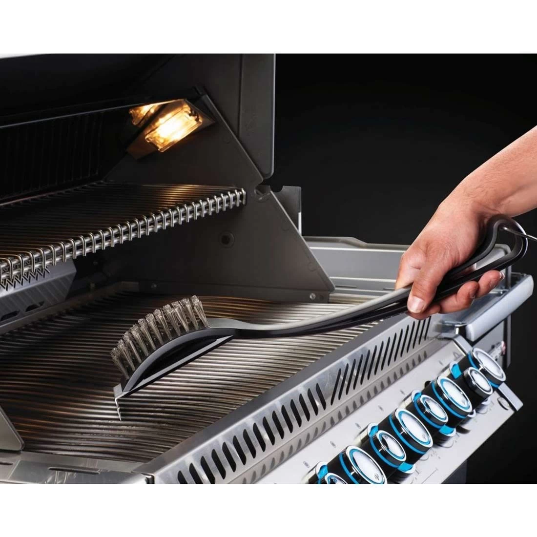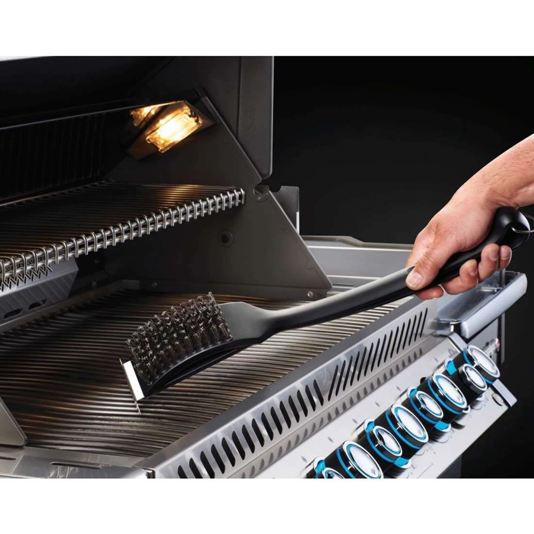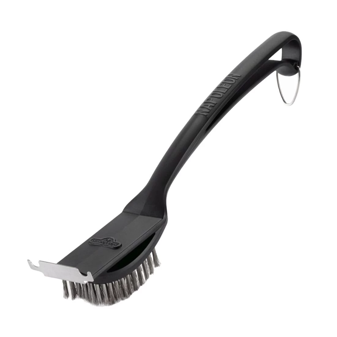 Napoleon® Grillbüste mit stabilen Edelstahlborsten und integriertem Grillschaber. Mit übergroßem Aufhänger zur leichten Aufbewahrung. Für Grillroste aus Edelstahl.
