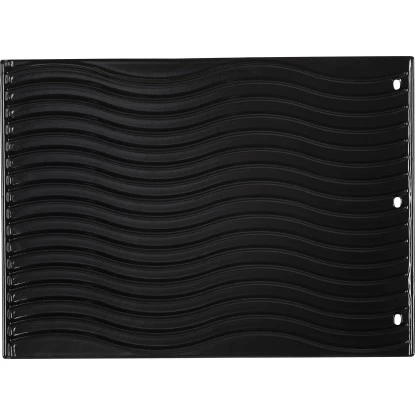 Die Napoleon Gusseisen-Wendeplatte mit einer glatten Seite und einer Seite mit gewelltem Profil. Dank der Emaillierung ist diese Gussplatte weniger für Korrosion anfällig und besitzt zudem einen Antihaft-Effekt. Ideal für kleinteiliges Grillgut, Spiegeleier, Burgerparties, Meeresfrüchte etc.
