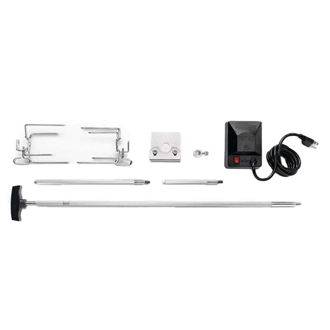 Napoleon® Drehspieß-Set in Heavy Duty Ausführung: Mit zwei Edelstahl-Fleischklammern, Edelstahl-Drehspieß (vierkantig) und Motor mit schwarzem Kunststoffgehäuse. Passend für Rogue® Serie