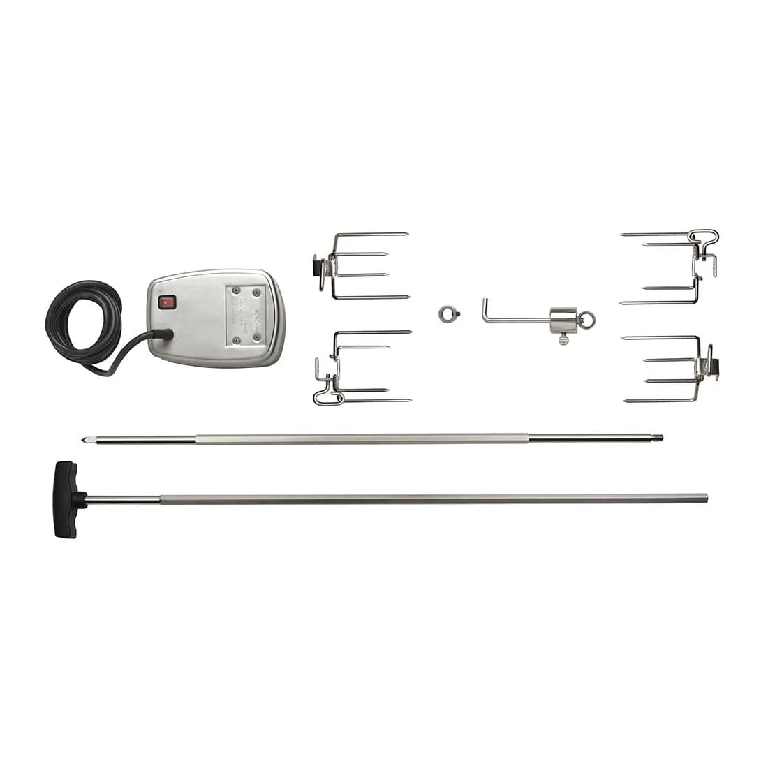 Napoleon® Drehspieß-Set in Commercial Quality Ausführung: Mit vier Edelstahl-Fleischklammern, Edelstahl-Drehspieß (sechskantig) und Motor mit Edelstahlgehäuse. Passend für das Grillmodel Prestige PRO™ 825.