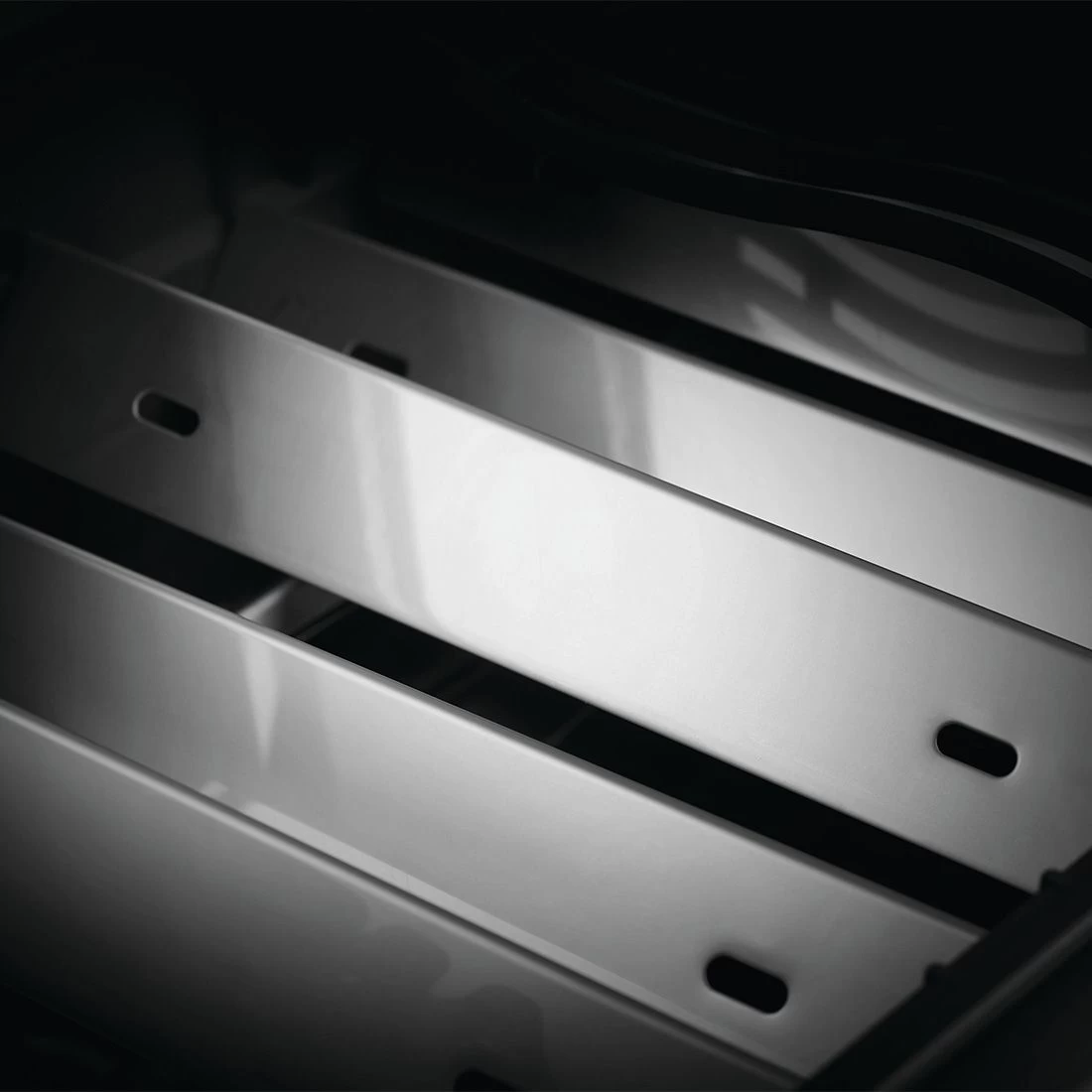 Dank der abklappbaren Seitenablagen die im Nu heruntergeklappt sind, lässt sich der Rogue® wunderbar in jeder Ecke oder auf dem kleinsten Balkon lagern. Die Porzellan-emaillierten WAVE™ Gussroste speichern mit hoher Effizienz die Hitze der darunterliegenden Brenner ab und geben diese an das Grillgut weiter. Bei jedem Wetter, das Branding sitzt!