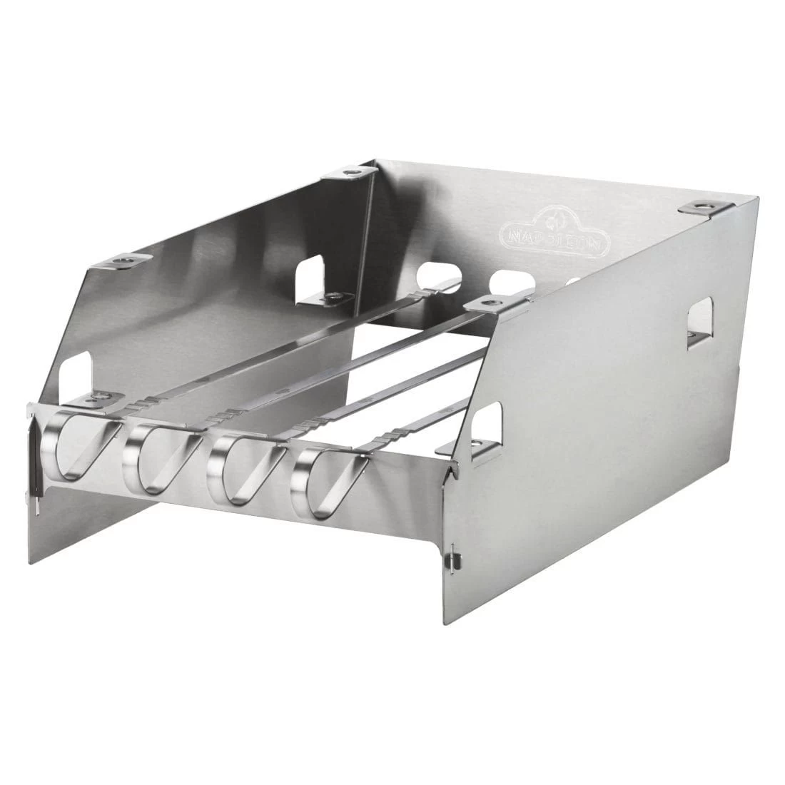 Multifunktionaler Napoleon® Windschutz. Dadurch brennt die SIZZLE ZONE™ auch bei stärkerem Wind stabil. Der Grillrost kann in drei weitere Positionen verstellt werden. Die vordere Blende ist klappbar, so dass der Zugang mit der Grillzange erleichtert wird. Zudem ist eine Spieß-Halterung integriert, die es ermöglicht über der SIZZLE ZONE™ Grillspieße ohne direkten Kontakt zum Rost zu grillen. Für Napoleon® Prestige-, PRO™- und Rogue SE-Serie geeignet.